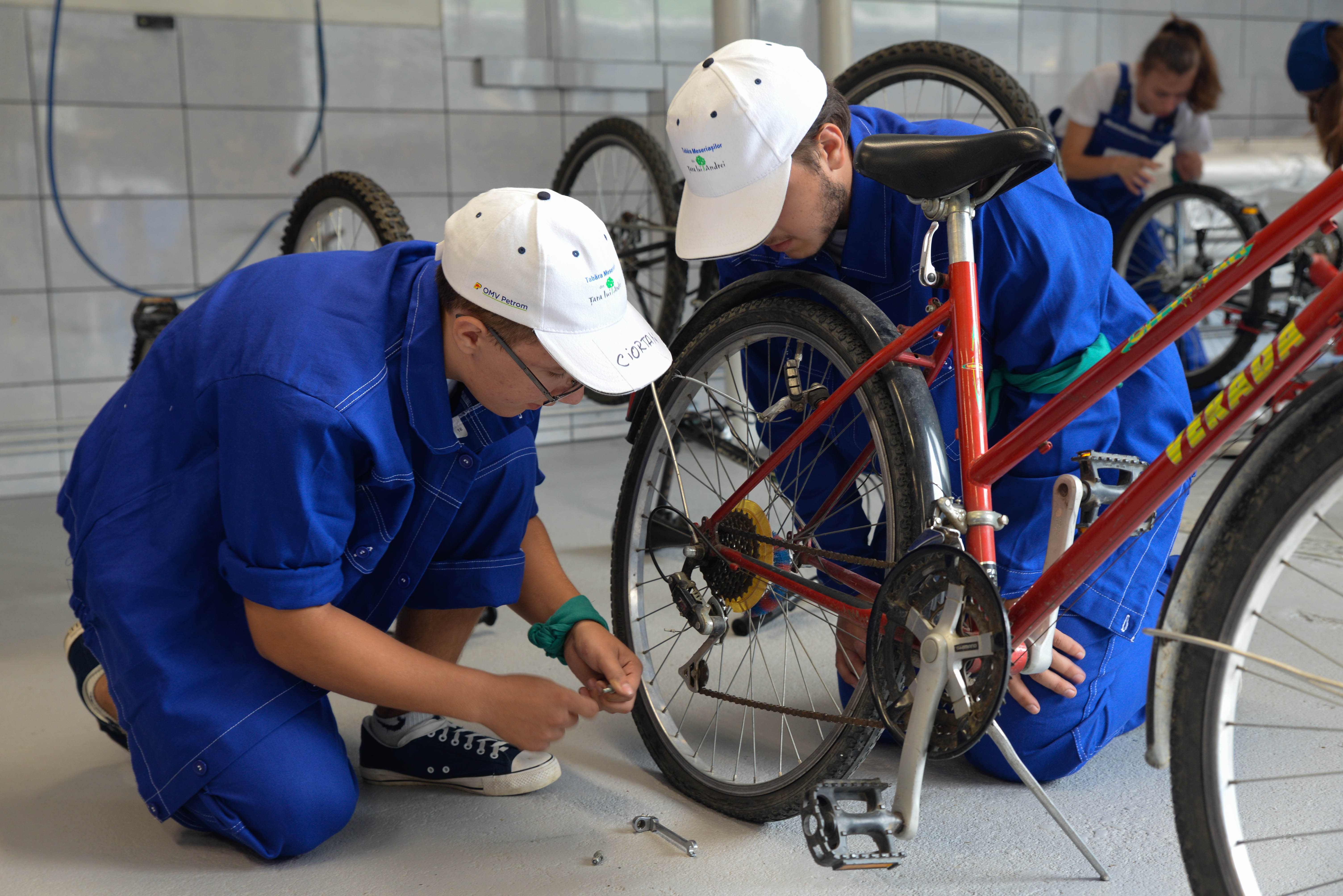 - Alături de mentorul lor, Gabriel Onofrei, Președintele Asociaţiei Române de Drift, viitorii meseriași au reparat biciclete vechi oferite de români, în cadrul campaniei #BicicletaMeseriasa