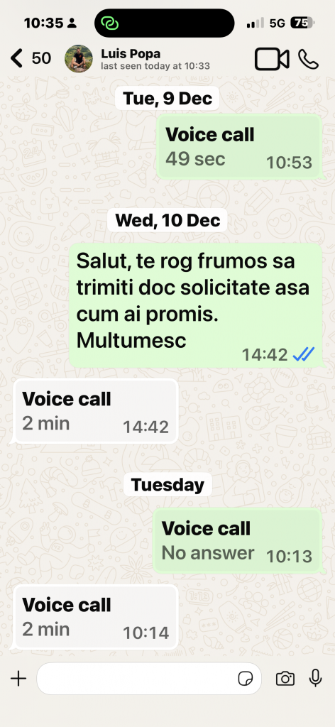 Solicitările repetate pe Legea 544/2001, privind datoriile reale ale asociației și clauzele financiare ale contractelor de salubrizare, s-au lovit de un zid. Mai grav, dialogul instituțional a coborât în derizoriu, pe WhatsApp, unde directorul instituției promite că “va sta de vorbă cu acționarii” pentru a vedea dacă poate furniza informațiile.
